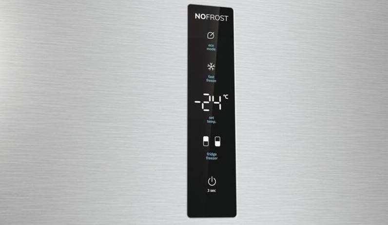 kombinovaná chladnička • výška 200 cm • objem chladničky 255 l / mrazničky 106 l • energetická třída C • technologie NoFrost Plus – zabraňuje hromadění ledu a námrazy • technologie AdaptTech – pozná vaše zvyky pro úsporu energie • funkce FastFreeze – rychlé zmrazení potravin • funkce XtremeFreze – okamžité zmrazení potravin • LED displej • úsporný režim EcoMode • hlučnost 35 dB • V × Š × H: 200 × 60 × 66,3 cm