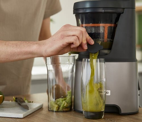 Darujte si směs vitamínů a mikronutrientů a pořiďte si pomalý odšťavňovač Kenwood JMP85.00SI. Je navržen tak, aby získal to nejcennější z každého kousku ovoce či zeleniny. Jakmile máte hotovo, funkce předčištění se postará o to, že závěrečné čištění bude snadné a rychlé.