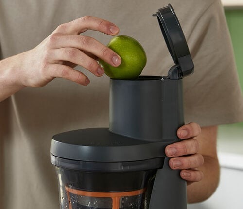 - Dva plnicí otvory: menší a XL široký vstup, do kterých můžete vložit bez problému celé jablko nebo mrkev
