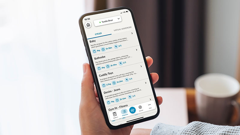Prostřednictvím aplikace hOn se vám otevírá přístup k široké řadě dodatečných funkcí a k více než 40 cyklům. Cykly si přizpůsobíte na míru tak, abyste dosáhli co nejlepšího výsledku sušení.